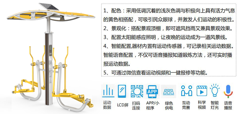 米兰全民健身产品涵盖健身路径、运动场馆、篮乒气羽排等产品,分为多个系列,先进的制造工艺、严苛的质量检测,确保产品性能优良、品质安全可靠,让运动简单科学。并将全民健身器材(户外路径器材、体育场馆等产品)进行智能化升级和互联,实现全人群覆盖、全场景智能,让运动赞美生活。