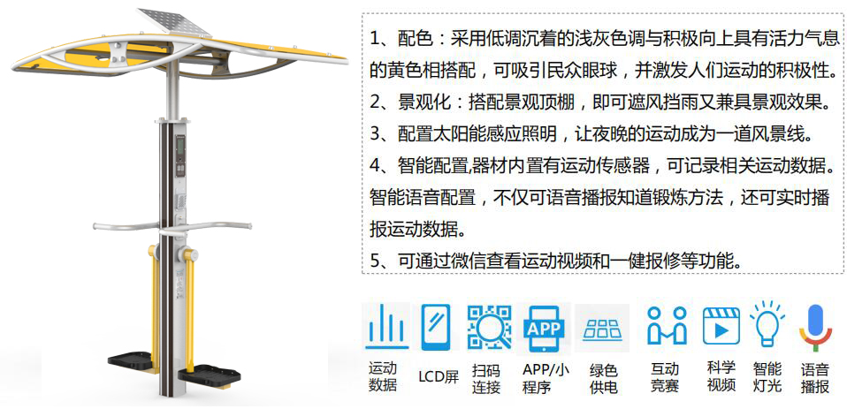米兰全民健身产品涵盖健身路径、运动场馆、篮乒气羽排等产品,分为多个系列,先进的制造工艺、严苛的质量检测,确保产品性能优良、品质安全可靠,让运动简单科学。并将全民健身器材(户外路径器材、体育场馆等产品)进行智能化升级和互联,实现全人群覆盖、全场景智能,让运动赞美生活。