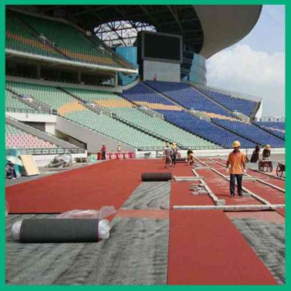 2. 弹性:具有适度的弹性及反弹力,可减少体力的消耗,增进竞赛成绩。 pu塑 胶跑道。