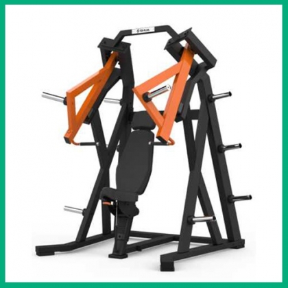 分动式的传统推胸训练器背垫呈现的角度,使用者进行力量锻炼时可提高其稳定性,其分动的功能可以有效的进行胸部的功能性训练,对于爆发性训练与功能性肌肥大训练会有非常好的帮助。