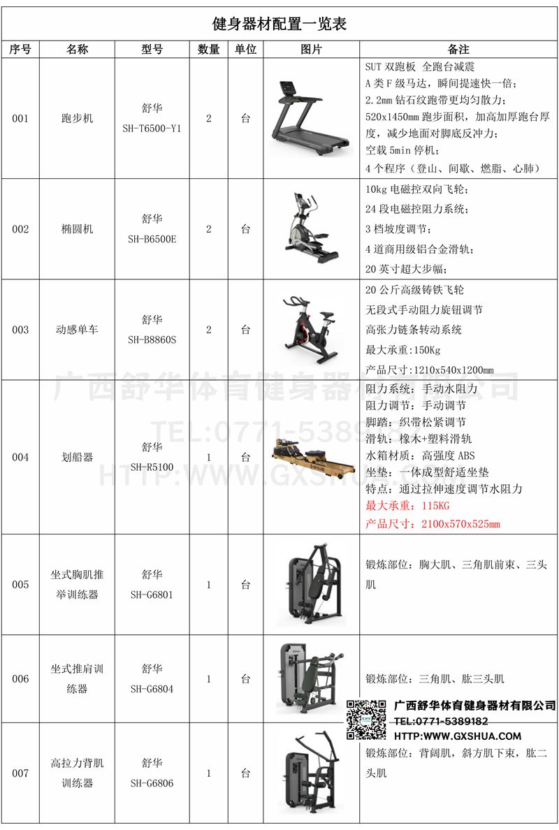 1.米兰X5高端跑步机SH-T6500*2台-新X5拥有740mm的宽敞跑台,520mm宽跑带,跑步时更畅快无拘束。搭载SUT全跑台减震系统,针对跑步冲击区进行前、中、后以及双侧全方面避震,有效分散跑步时对跑者膝盖和踝关节的冲击,跑步也能更护膝。采用T18MM跑板+5MM减震棉+T12MM双层专利跑板减震结构设计的韧性跑板,承重力强,回弹舒适,带来缓震护足的舒适跑步体验。搭载了一颗持续马力2.5HP,峰值马力5.0HP的强劲动力马达,能为跑步提供源源不断的动力,让跑步流畅不卡顿。跑步机的速度可达18km/h,能够满足更专业的跑步锻炼需求。拥有15段的电动坡度扬升功能,让跑步不至于平地跑,更具挑战性。跑步时,实时了解并控制心率,能让运动更加高效。