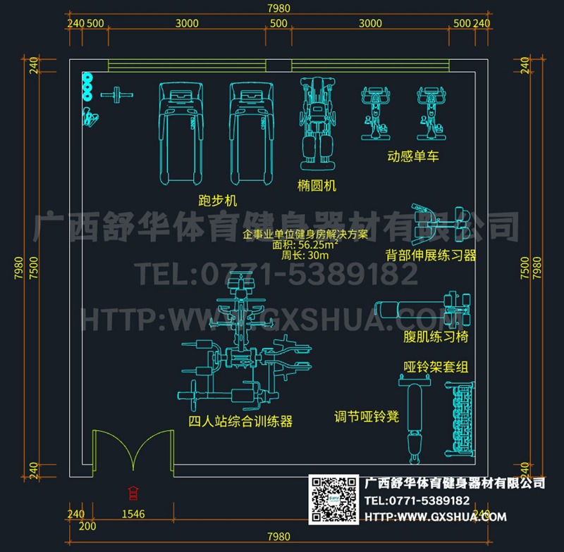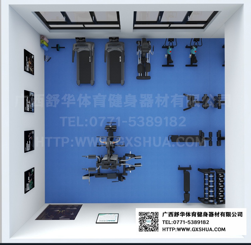 此方案要求面积小于57m²,适用于企事业单位、酒店会所、楼盘社区、学校等健身场所,能满10-15人同时健身使用。(方案根据场地空间大小、预算、产品需求等进行配置仅为启发性参考)