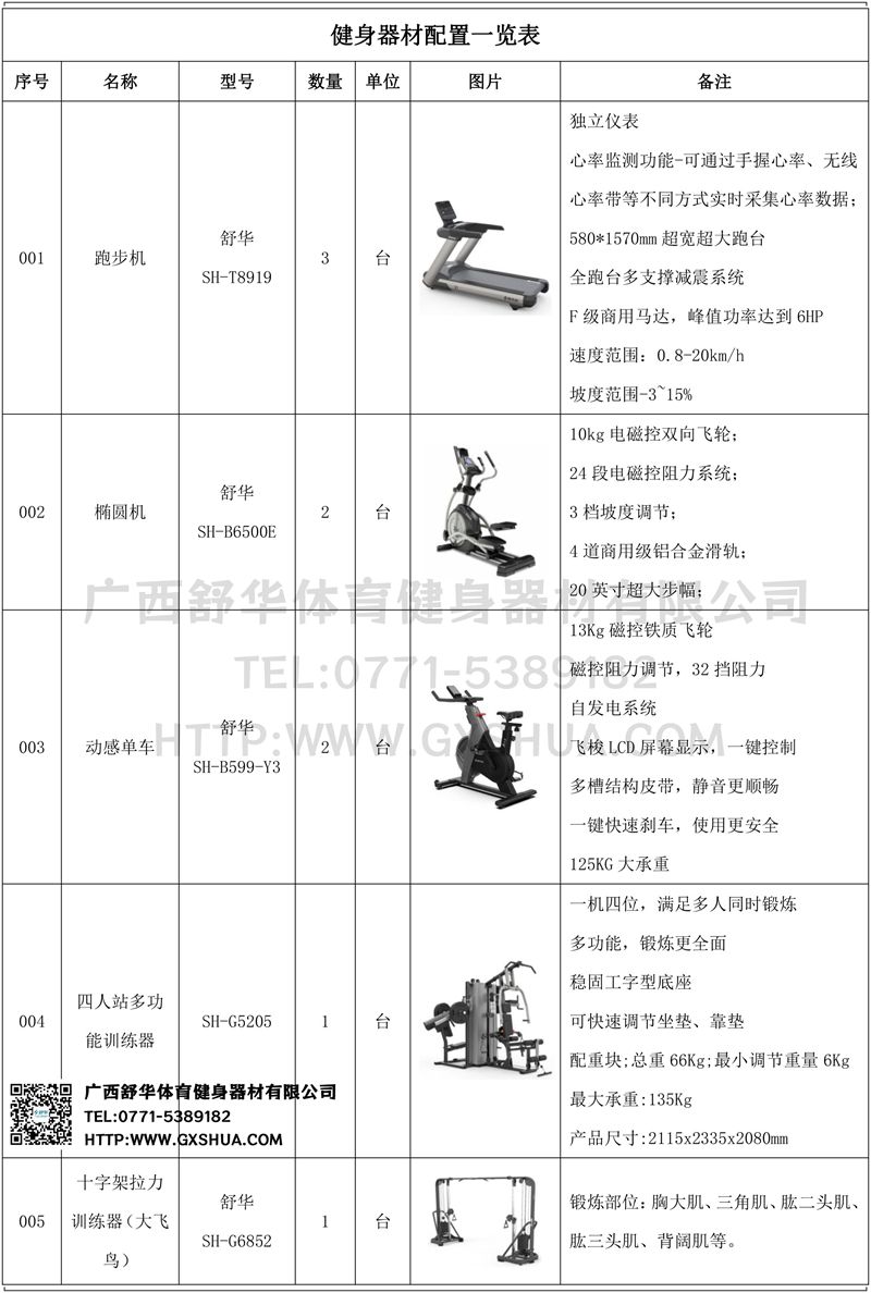 1.米兰V9跑步机SH-T8919*3台-580*1570mm超宽超大跑台-跑感舒适,跑台整体安全稳定;全跑台多支撑减震平台,保证跑台超强支撑力,达到180kg支撑,满足专业健身房需求。F级商用马达-超强马达,AC 3.0HP 交流,峰值功率达到6HP,F级商用品质。速度范围达到0.8-20km/h;V9跑步机可实现跑台扬升功能,坡度范围-3~15%,满足客户不同的锻炼需求。