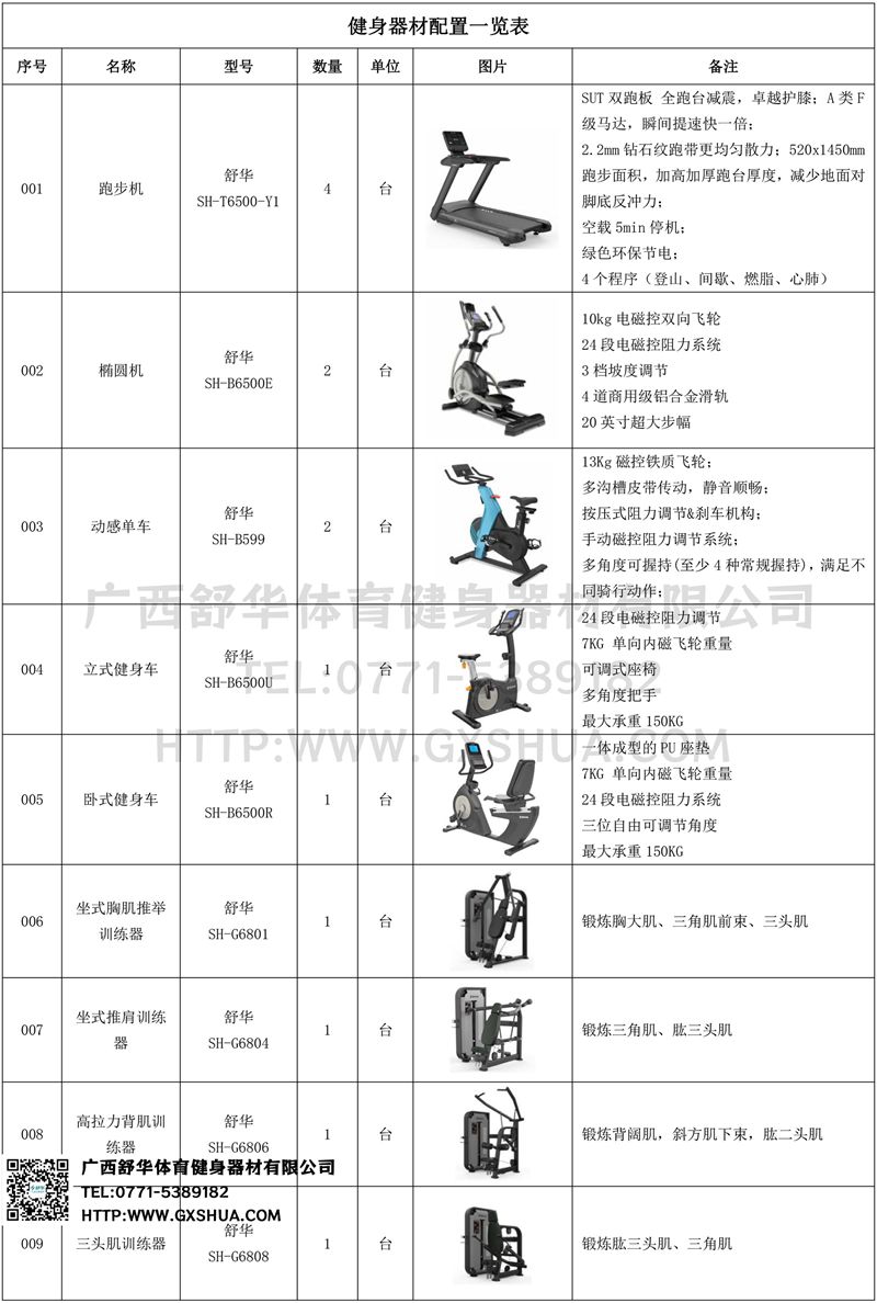 1.米兰X5跑步机SH-T6500*2台-新X5拥有740mm的宽敞跑台,520mm宽跑带,跑步时更畅快无拘束。搭载SUT全跑台减震系统,针对跑步冲击区进行前、中、后以及双侧全方面避震,有效分散跑步时对跑者膝盖和踝关节的冲击,跑步也能更护膝。