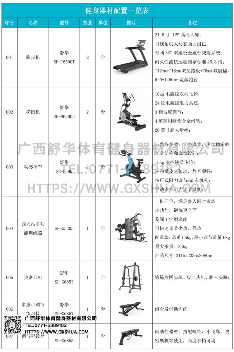 主要配置史密斯机、多重可调节练习椅、10付哑铃套组、哑铃凳、上斜练习椅(各1台),可以实现对不同肌肉群的针对性训练,满足肌肉训练需求,全方位激活身体机能。