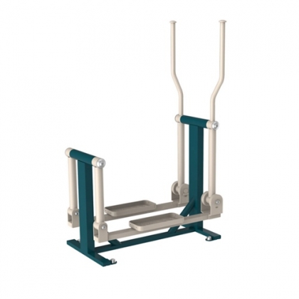 双手握紧把手,脚踏踏板上,两脚前后交替自然摆动,进行漫步动作