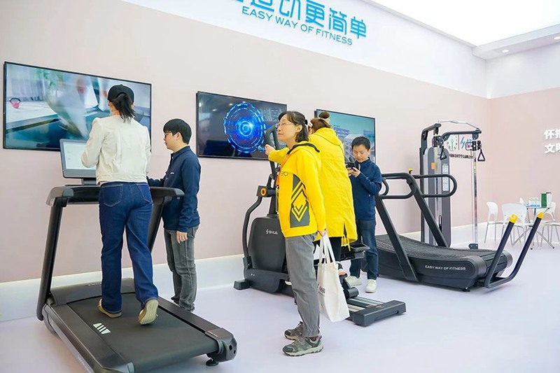 本届教育展,米兰展出9款校园体育产品,包含备受关注的星火+校园户外运动路径、趣味投篮训练器以及跑步机、椭圆机、综合力量训练器等。