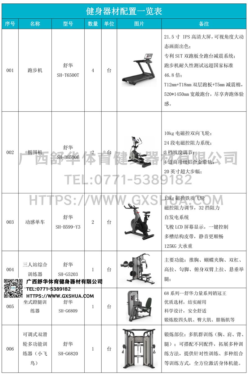 1.米兰X5 Pro跑步机SH-T6500T*4台-经典时尚造型配色,简约Z字车架造型,融合各种家居风格,彰显奢华运动质感;21.5英寸高清触控屏-传承动感美学,成就时代典型之作全新升级V3.0系统,支持系统在线升级,极大提升用户交互体验;专利减震跑台-采用SUT双层跑板、全跑台减震系统,且该减震科技获得国家专利,有效减少关节冲击,52cm宽跑台搭配精抽雏形滚筒,稳固不位移;F级马达动力强劲-5.0HP峰值马达,2.5HP持续输出,0~15%坡度调节,最高18km/h时速,胜任不同类型训练;